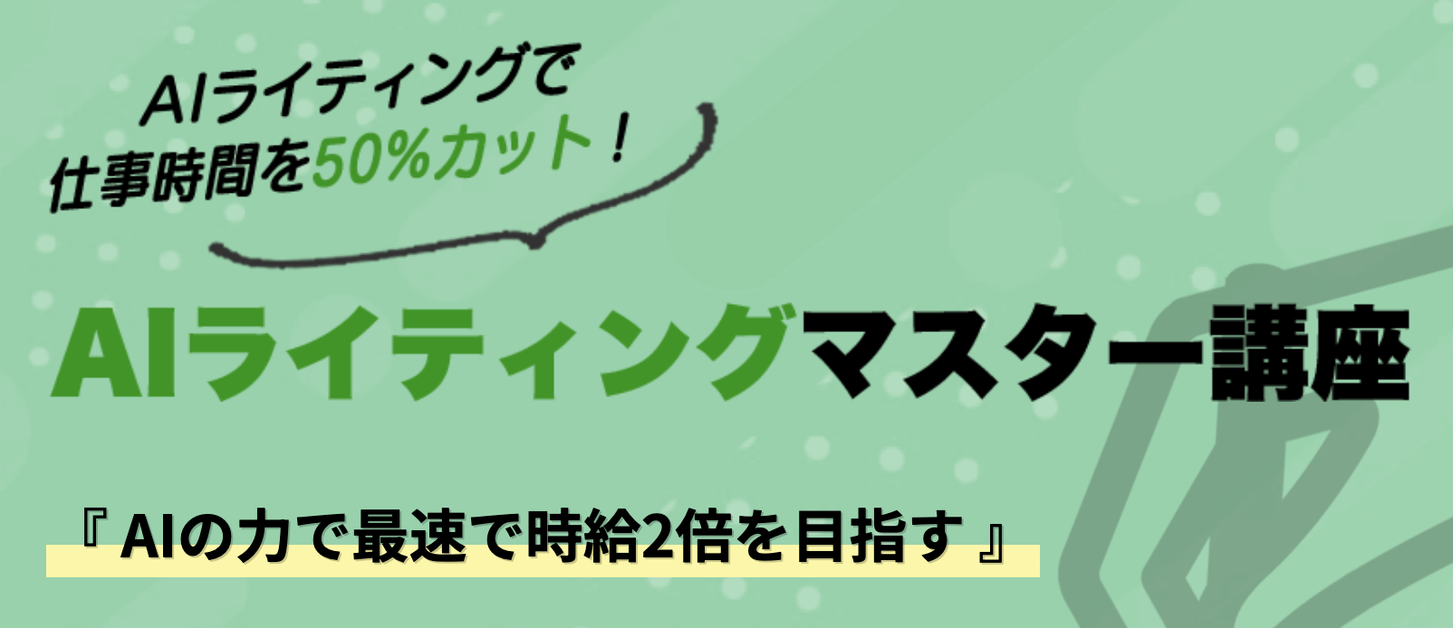 しかし、「AIを使えば自動で完璧な文章ができる」というわけではありません。AIを正しく導く指示や、文章を整えるスキルが必要です。そこで登場したのが、AIライティングを体系的に学び、作業スピードを2倍にするオンライン講座です。