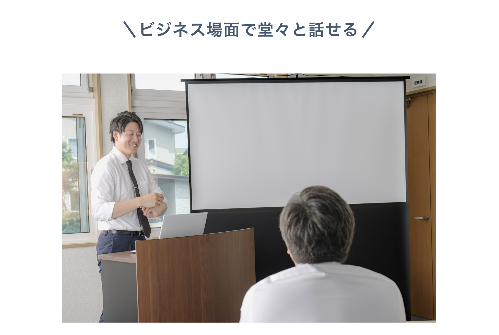 専任講師が、あなたのペースに合わせてマンツーマン指導。実践トレーニングを通じて「伝わる話し方」を習得します。