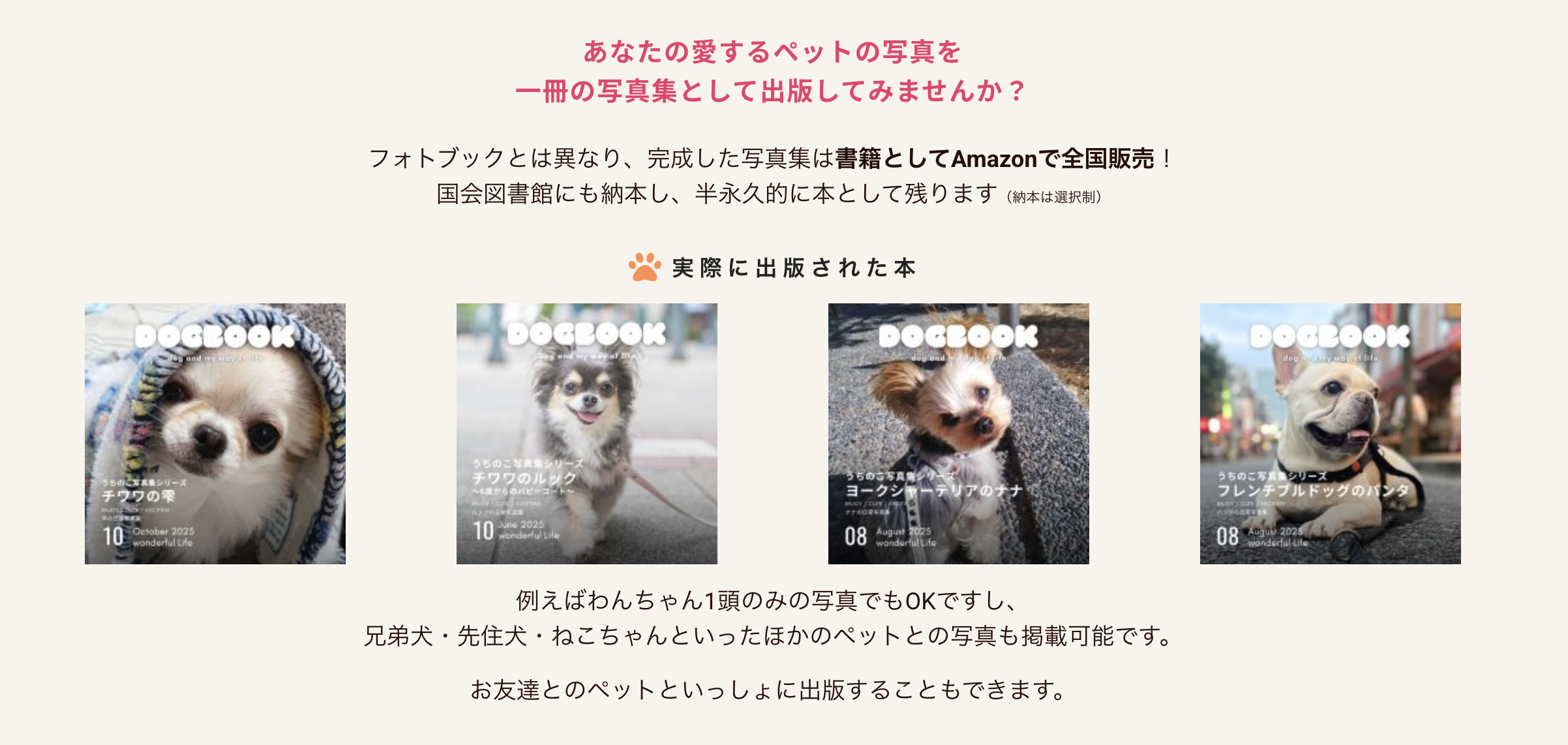 ペットの写真集を出版するという体験は、ただの思い出作りではなく、愛情そのものを形にする行為です。Amazon販売、国会図書館への寄贈、編集不要の簡単手続きなど、飼い主さんにとって嬉しい仕組みが整っています。