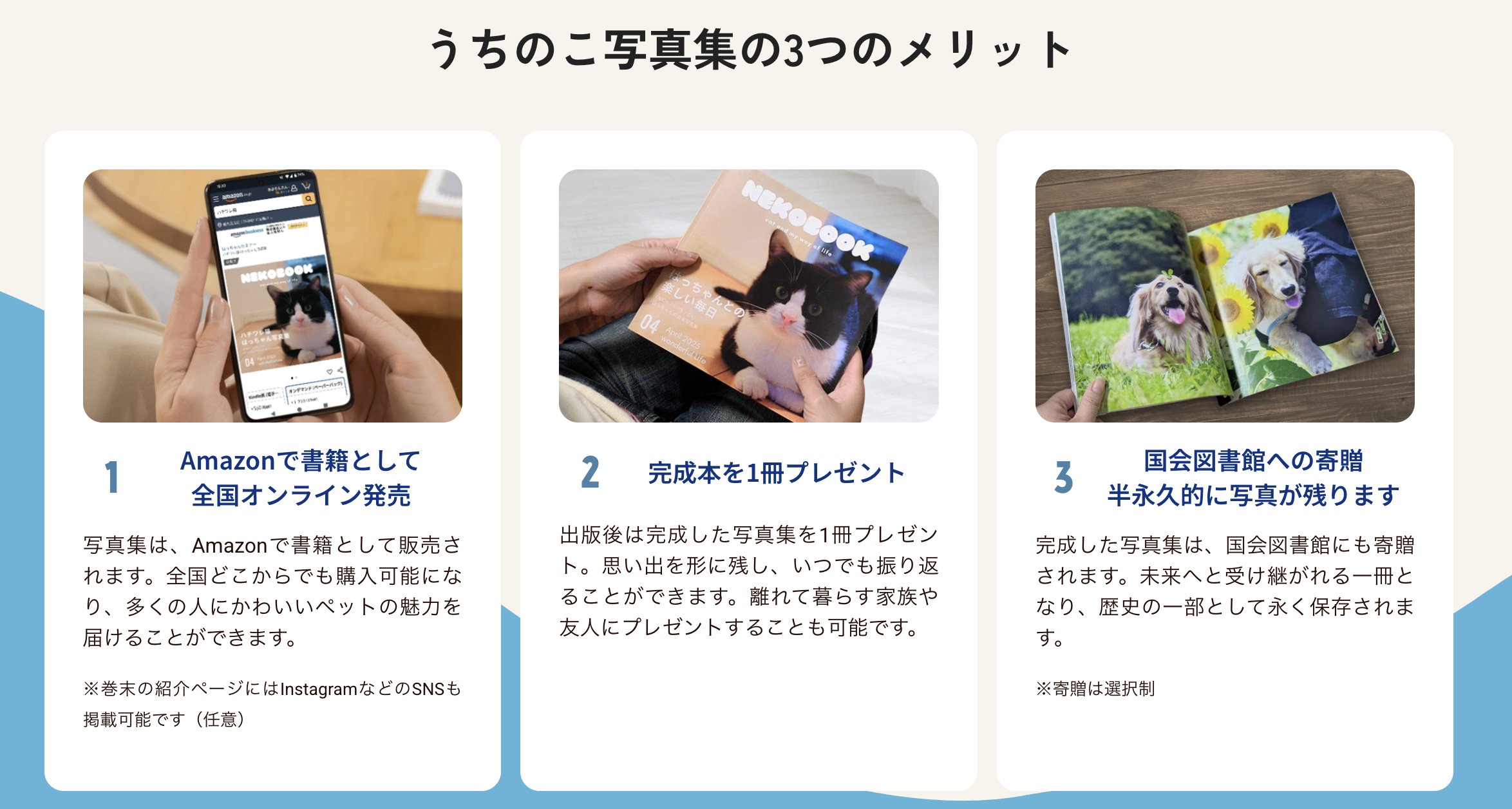 さらに、完成した写真集は国会図書館に寄贈され、半永久的に記録として残る仕組みになっています。あなたの大切なペットの姿が、正式な記録物として未来に残り続けることは、大きな意味と価値を持つはずです。