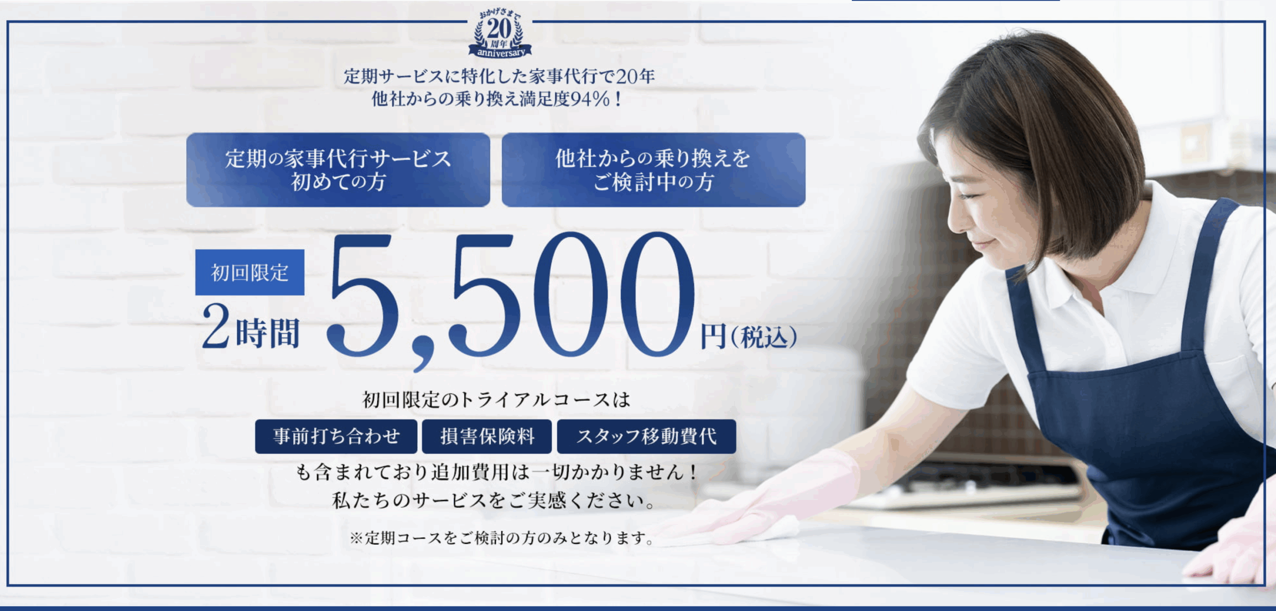 - **専門サービス(定期):** **定期サービス専門の家事代行サービスとなっております(最低契約月2回~ 6か月契約以上)**。継続的な利用により、生活の質が安定的に向上します。