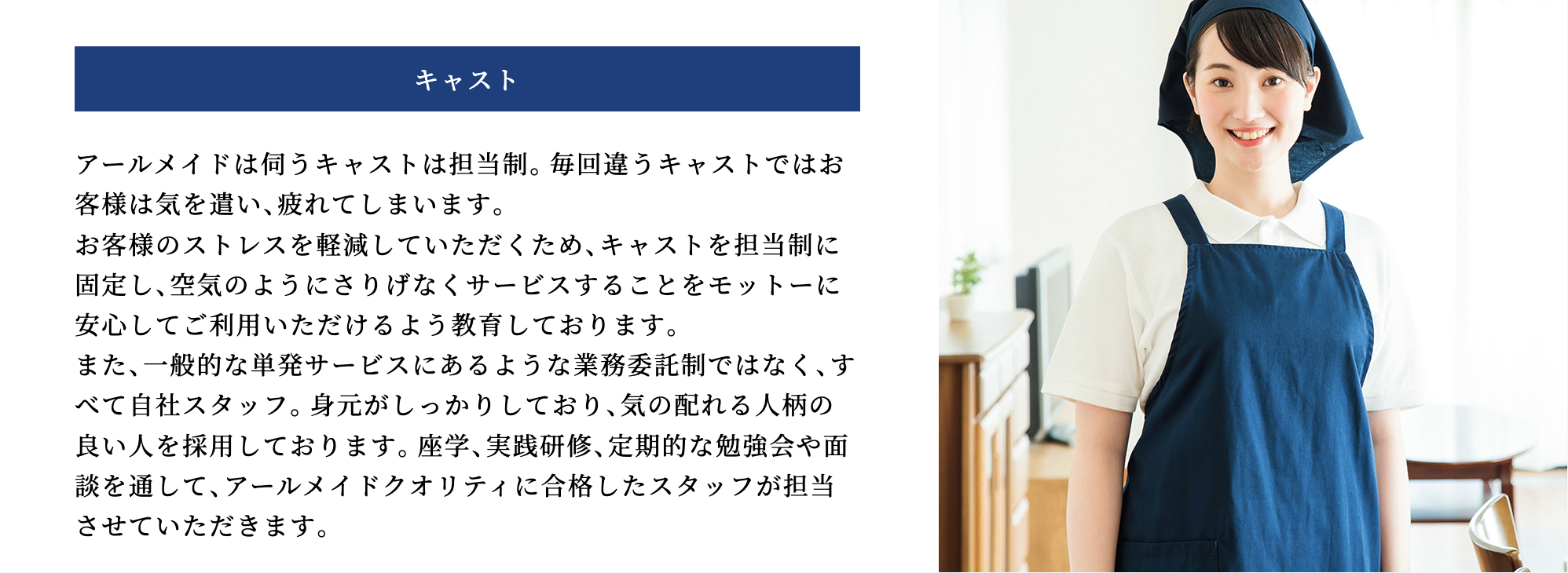 - **保険完備:** 業界トップクラスの保険に加入しているため、安心して自宅にスタッフを迎えられます。